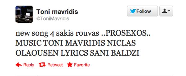 Ο μουσικός παραγωγός υπογράφει τα νέα τραγούδια του Σάκη Ρουβά μαζί με τους Niclas Olaousen και Sunny Μπαλτζή στους στίχους.