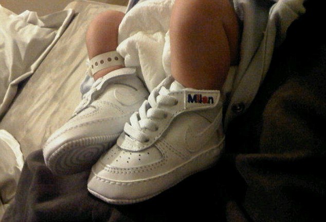 Ο μικρός φοράει τα πρώτα του αθλητικά παπούτσια που φέρουν το όνομά του «Milan».